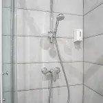 Guests can use a shower, along with hairdryers and towels.